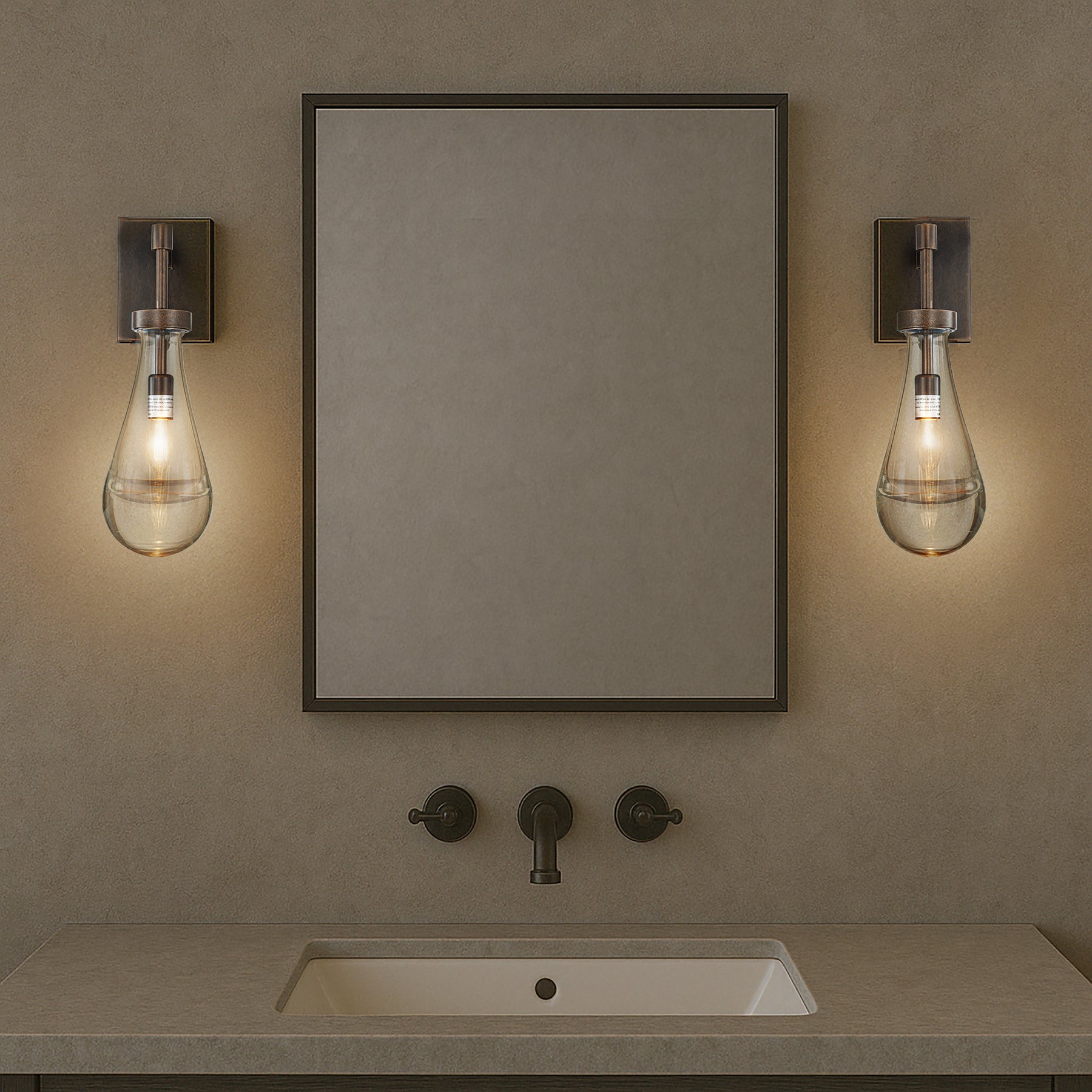 Elevate your space with this modern teardrop wall sconce, a stunning fusion of sleek design and ambient elegance. Crafted with a hand-blown clear glass shade in a graceful water-drop silhouette and finished in bronze, this wall sconce offers a contemporary statement with timeless appeal. The transparent glass not only enhances the brilliance of the bulb but also casts a warm, inviting glow—perfect for creating a cozy atmosphere in any room.